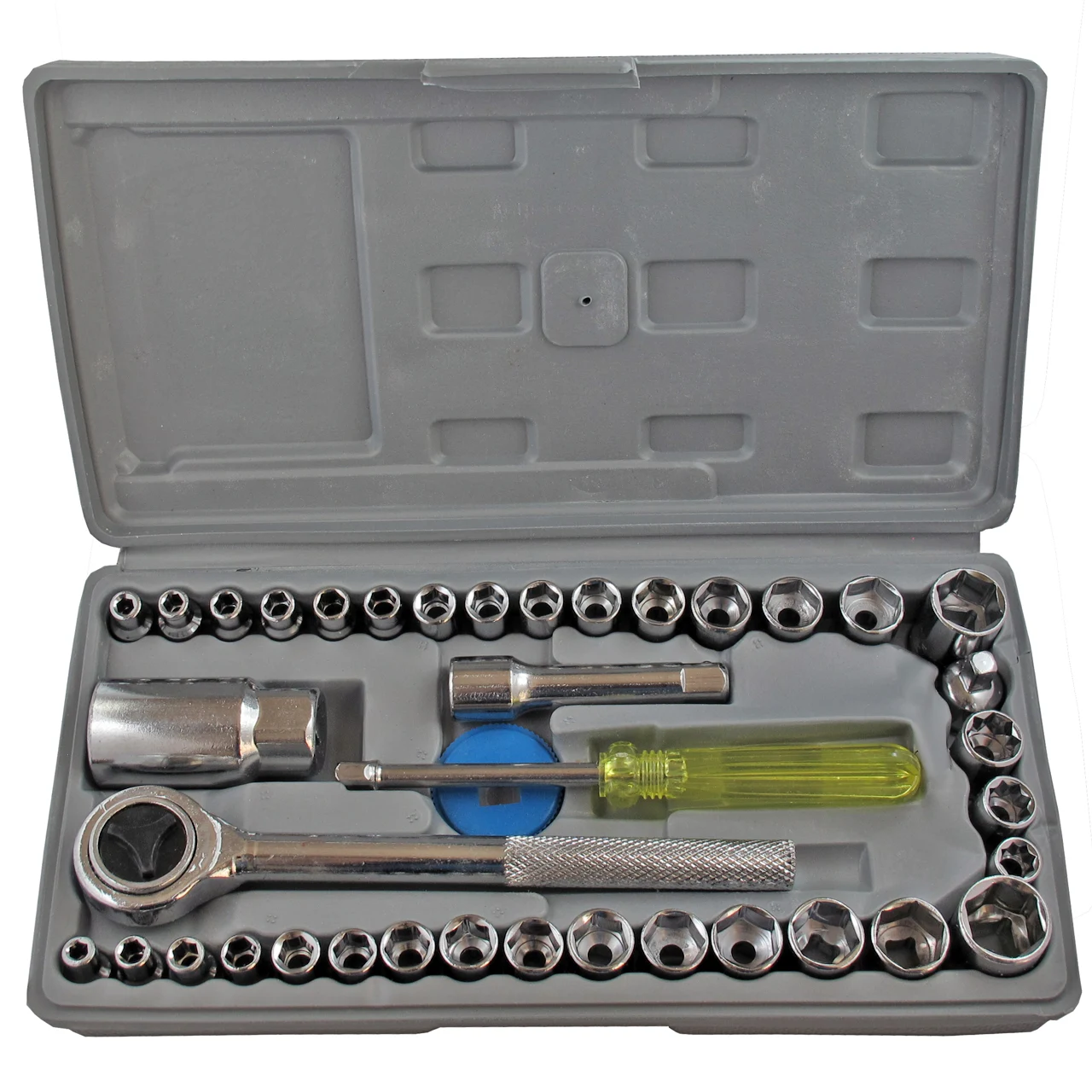 محتویات شامل انواع سری بکس متریک و SAE، آچار جغجغهای، دسته بکس، رابطهای مختلف، و ابزارهای کاربردی دیگر است—کافیست برای بیشتر تعمیرات روزمره آماده باشید.