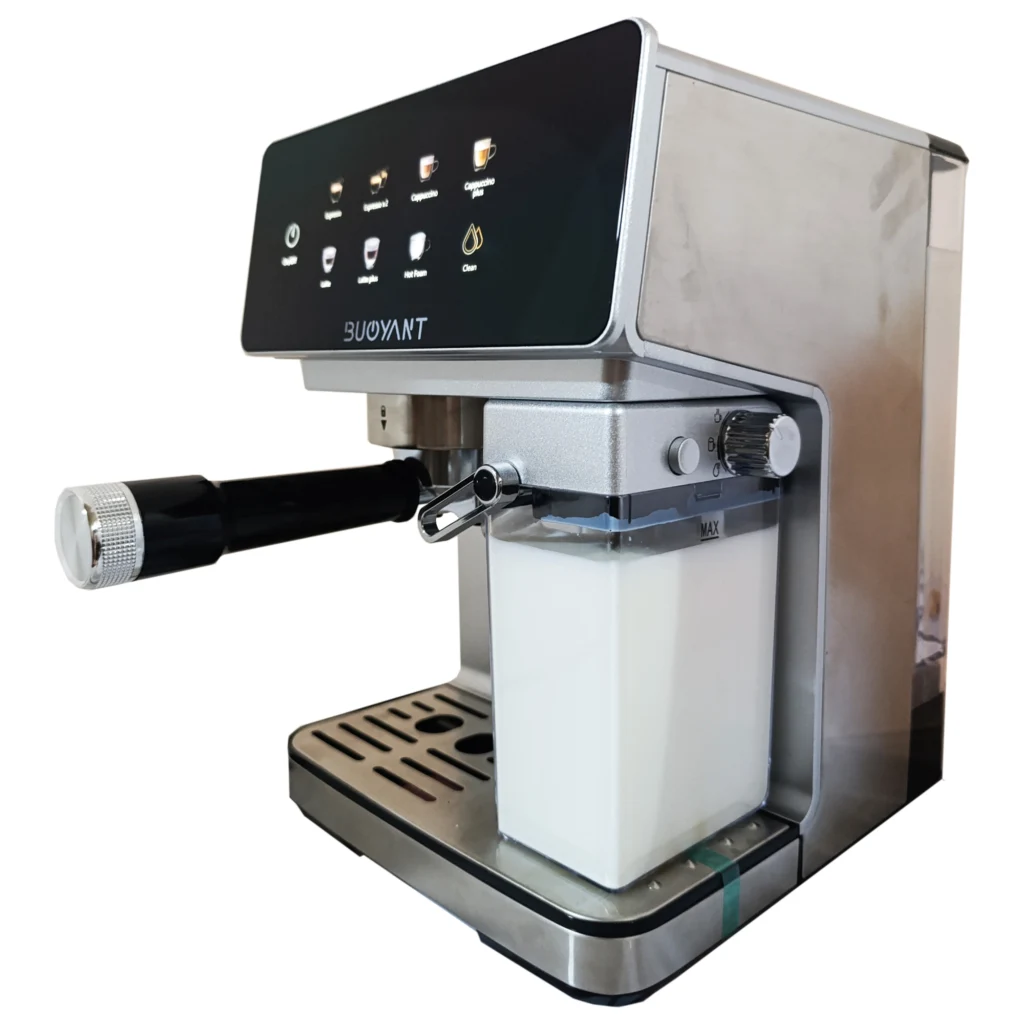 اسپرسوساز بویانت مدل BC950 یکی از مدلهای اقتصادی و باکیفیت برند Boyant است که با طراحی مدرن، عملکرد قدرتمند و امکانات کاربردی، تجربهی لذتبخشی از تهیهی قهوه در خانه یا محل کار فراهم میکند. این دستگاه با فشار بخار 15 بار و توان مصرفی 1350 وات، قهوهای غلیظ، معطر و حرفهای مشابه قهوهسازهای کافیشاپی تولید میکند.