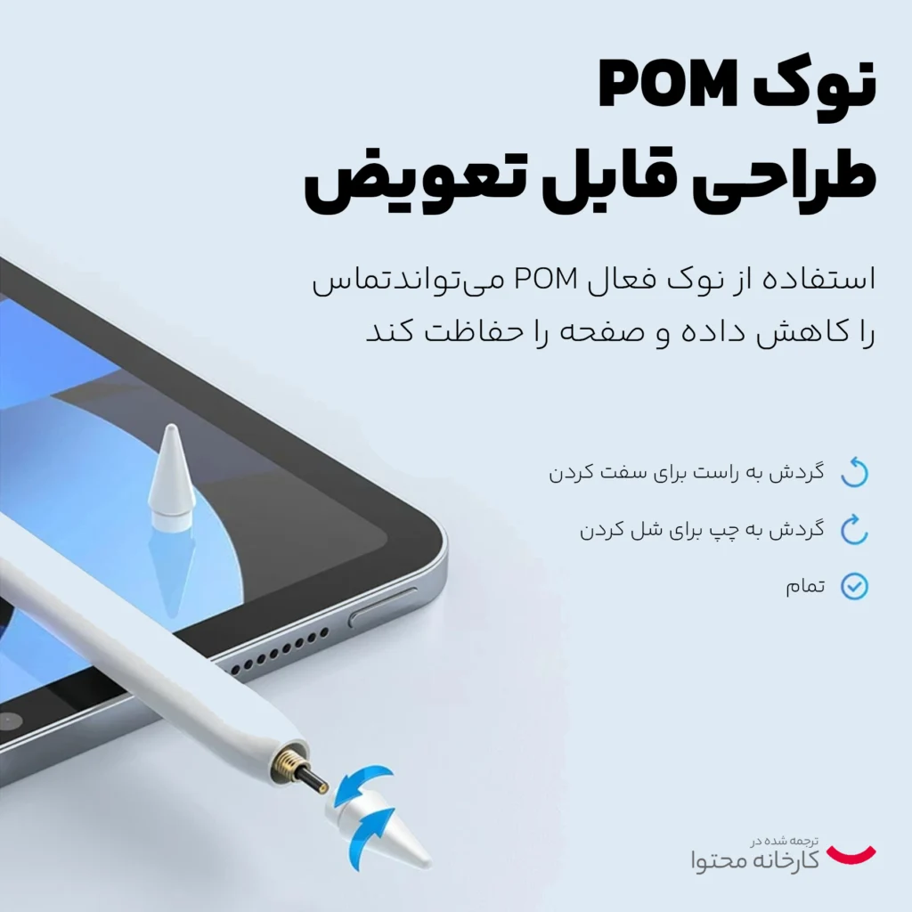 از لحاظ طراحی، بدنهی مات و ظریف این قلم جلوهای مدرن و حرفهای به میز کار یا کیف شما میدهد. همچنین جنس نوک قلم بهگونهای است که هیچ آسیبی به صفحه نمایش وارد نمیکند و میتوان از آن روی شیشه، پلاستیک و محافظهای مختلف بدون مشکل استفاده کرد.