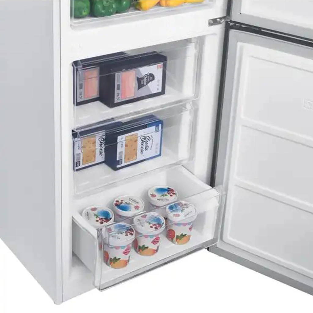 داخل این یخچال فریزر بهصورت هوشمندانه تقسیمبندی شده تا بتوانید بهراحتی مواد غذایی مختلف را دسترسی و چیدمان کنید. قفسههای شیشهای مقاوم، کشوهای مخصوص میوه و سبزیجات و طبقات قابلتنظیم در بخش یخچال، امکان سازماندهی بهتر مواد را فراهم میکنند. بخش فریزر نیز فضای مناسبی برای نگهداری گوشت، ماهی، بستنی و مواد یخزده در اختیار کاربر قرار میدهد. موتور این مدل با مصرف انرژی بهینه طراحی شده تا در عین ارائهٔ سرمایش مطلوب، هزینهٔ برق را کنترل کند. اگر به دنبال خرید یخچال فریزر جیپلاس مدل GRF-P3118W هستید، این ترکیب ظرفیت و کارایی یکی از نقاط قوت برجستهٔ آن است.