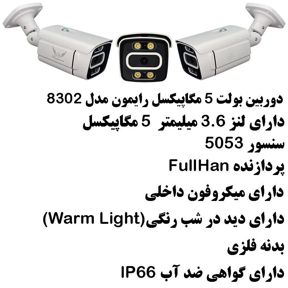 این دوربین بهسادگی با دستگاههای DVR سازگار است و نصب آن بدون نیاز به دانش فنی پیچیده انجام میگیرد. ترکیب کیفیت ساخت بالا، امکانات کاربردی و قیمت اقتصادی باعث شده رایمون بولت 8302 پنج مگاپیکسل به گزینهای ارزشمند برای ارتقای امنیت تبدیل شود.