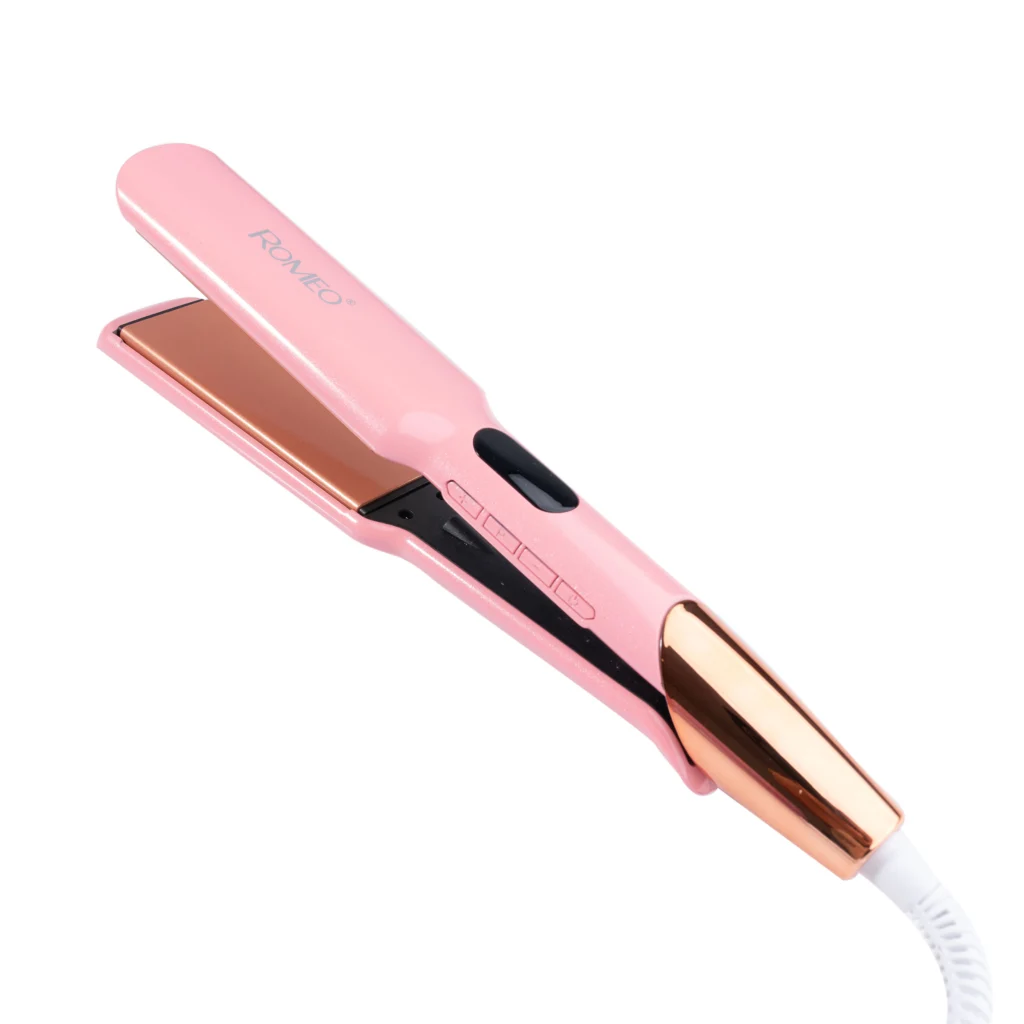 اتو مو رومئو مدل RM-5353 یکی از محصولات حرفهای و کاربردی برند رومئو است که برای صاف کردن و حالتدهی انواع مو طراحی شده است. این دستگاه با صفحات پهن سرامیکی خود، حرارت را به طور یکنواخت منتقل میکند و مانع آسیب به موها میشود.