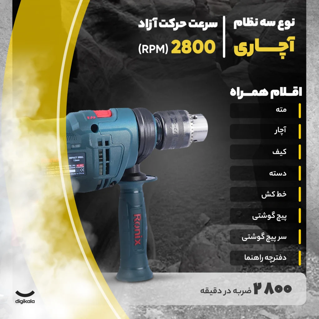 با خرید دریل چکشی رونیکس مدل 0001 مجموعه 22 عددی، یک ابزار حرفهای، بادوام و کامل برای پروژههای روزمره و صنعتی در اختیار خواهید داشت.