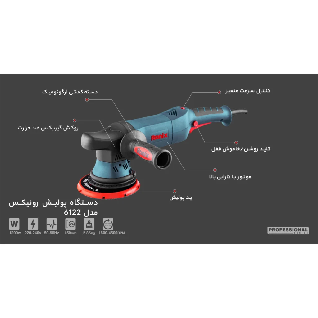 دستگاه پولیش رونیکس مدل 6122 یکی از ابزارهای حرفهای و قدرتمند برای پرداخت و براقکردن سطوح مختلف است. این دستگاه با طراحی مدرن و موتور توانمند، انتخابی مطمئن برای کاربران خانگی و حرفهای محسوب میشود.